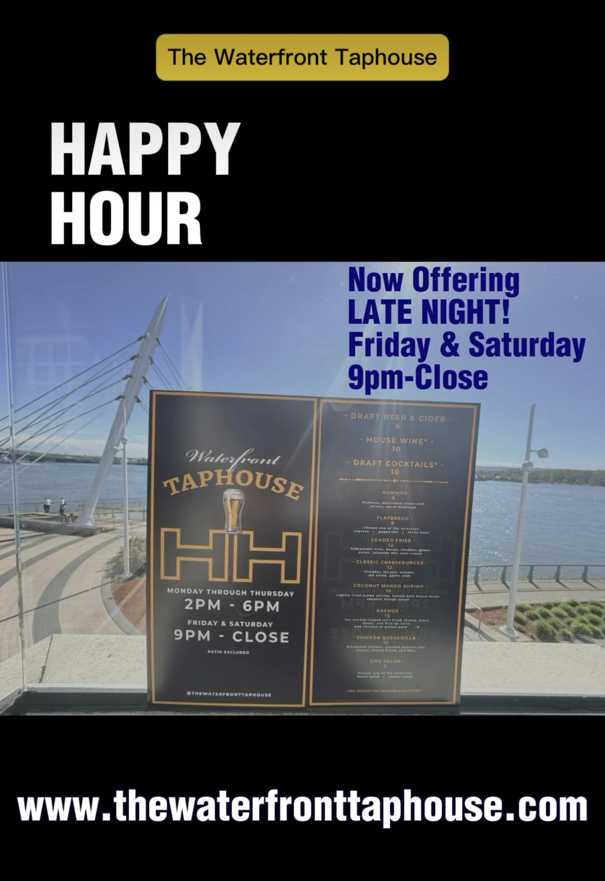 Serving upscale pub food, a wide variety of local beers, wines, and spirits, and showcasing exceptional mixology, The Waterfront Taphouse's second-story spot has a spectacular view of the Columbia River and Grant Street Pier.